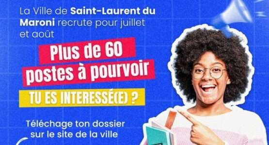 La Ville de Saint-Laurent du Maroni recrute pour les mois de juillet et août ! N’attends pas, les places sont limitées ! Date limite de candidature : Le 15 Mai 2026