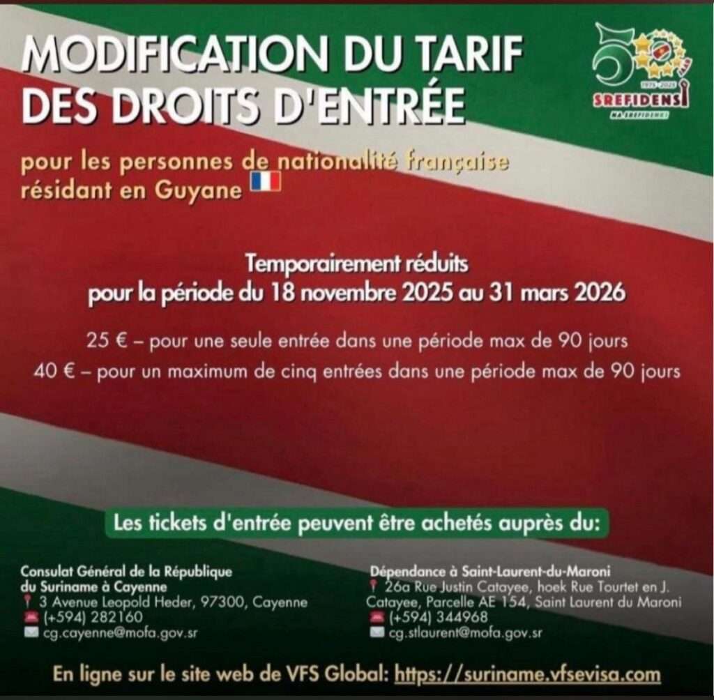 Partager sur Facebook Partager sur Twitter Envoyer par e-mail Imprimer Enregistrer en PDF Modification temporaire des droits d’entrée au Suriname Publié le 18 novembre 2025 dans Économie et Finance, Voyages et Tourisme En ligne sur VFS Global Toutes les actus